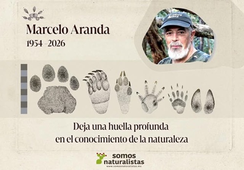 Tuve la inmensa oportunidad de conocer, convivir y caminar con Marcelo Aranda desde finales de los años 70s, cuando ambos éramos estudiantes. Las huellas de este excepcional naturalista no son efímeras, como la mayoría de los rastros que estudió, sino que están grabadas profundamente en el corazón de muchísimos naturalistas.
