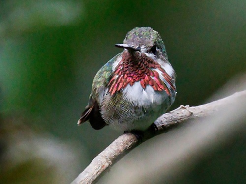 El Zumbador Garganta Rayada es uno de los colibríes (Familia Trochilidae) más pequeños, mide entre 7 y 10 cm y pesa de 2 a 3 gramos. Se caracteriza por las franjas de color rojo vino en la garganta. Es una especie migratoria que se observa en México en primavera y verano en bosques de pino y encino.